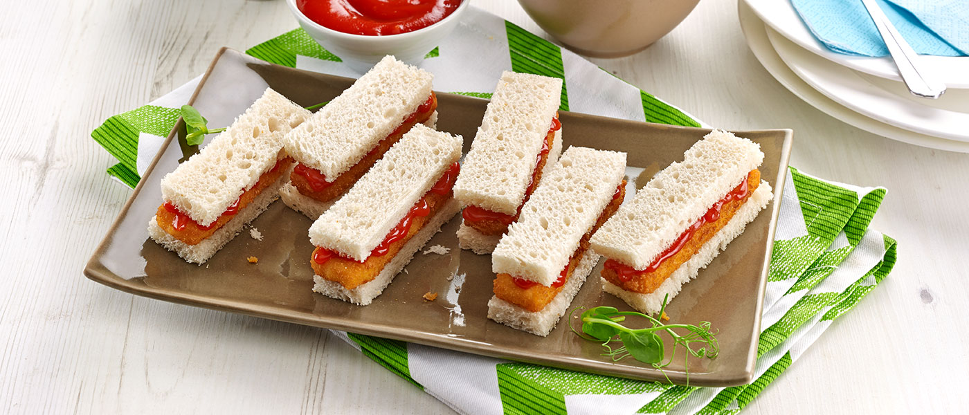 One round consists of 2 slices of white bread with the crusts cut off filled with one of our kid-friendly fillings, and cut into 3 fingers.