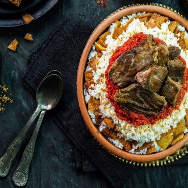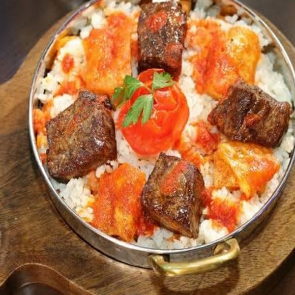 A delicious Egyptian dish, spiced boiled beef served over rice and toasted pita bread and garlicky warm tomato sauce. Serve 2 to 3 people